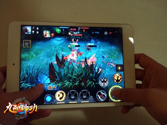 手游客栈今日报道(2015.05.07)全球对战功夫竞技手游《九阳神功》在4月份邀请了一批资深玩家现场试玩之后,对游戏的画面、玩法和系统再次进行了首测之前的集中优化提升。从官网上线宣传视频的曝光到预约活动的全面开启,从内部试玩的强烈反响到游戏的闭关升级打磨,《九阳神功》手游可谓是吊足了MOBA爱好者的胃口,而近日一段从内部流出的游戏实机演示的谍照让玩家们看到了游戏的实战场景,也更加激起了众多玩家对这款创新MOBA手游的期待。