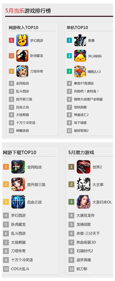 根据5月手游成绩单可以看出,《梦幻西游》依然占据收入榜第一的位置,《卧虎藏龙》排在了《梦幻西游》后收入榜第二位置。从年初开始,《卧虎藏龙》的势。另外,《世界2》也因表现不俗,成为五月潜力游戏排行榜第一名。