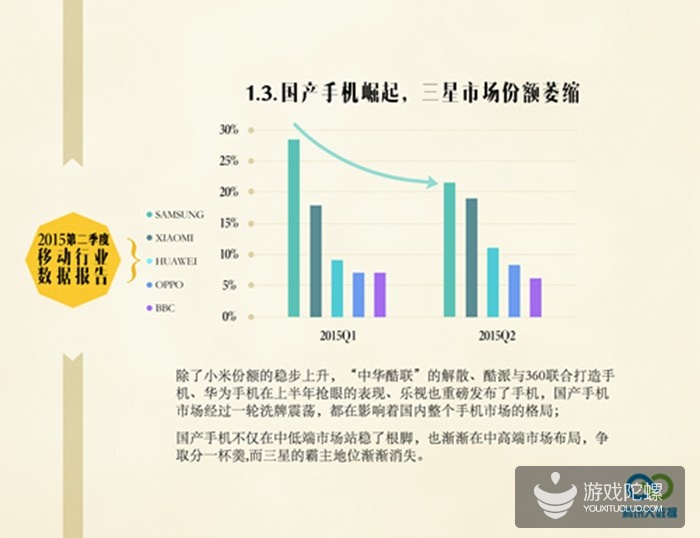 游戏客栈今日报道(2015.08.24)8月24日,腾讯大数据发布了《2015第二季度移动行业数据报告》,报告从移动设备现状、应用市场生态及开发者进行分析。报告指出: