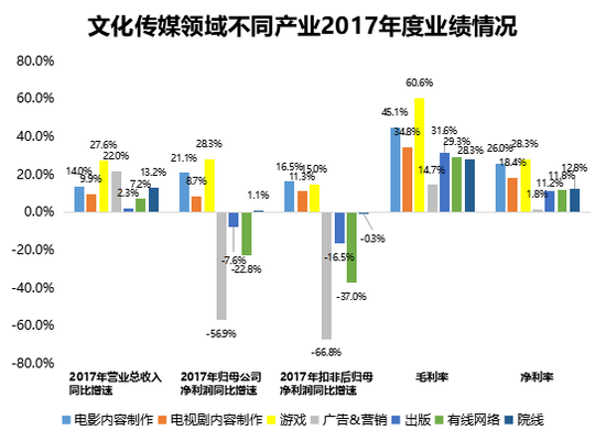 根据伽马数据对A股上市企业统计,在电影内容制作、电视剧内容制作、游戏、广告营销、出版、有线网络、院线等传媒行业板块中,游戏板块2017年营业总收入同比增速、归母公司净利润同比增速、毛利率、净利率四个数据位列第一,财务数据上的突出表现,也证明游戏产业仍然是价值较高的板块,以上市公司为代表的企业也具备较高的投资价值。