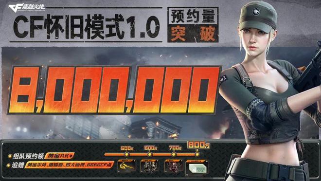 受众最广的当属《穿越火线》怀旧模式,在4月21日上线前,官方公布该怀旧模式的预约人数突破800万大关。