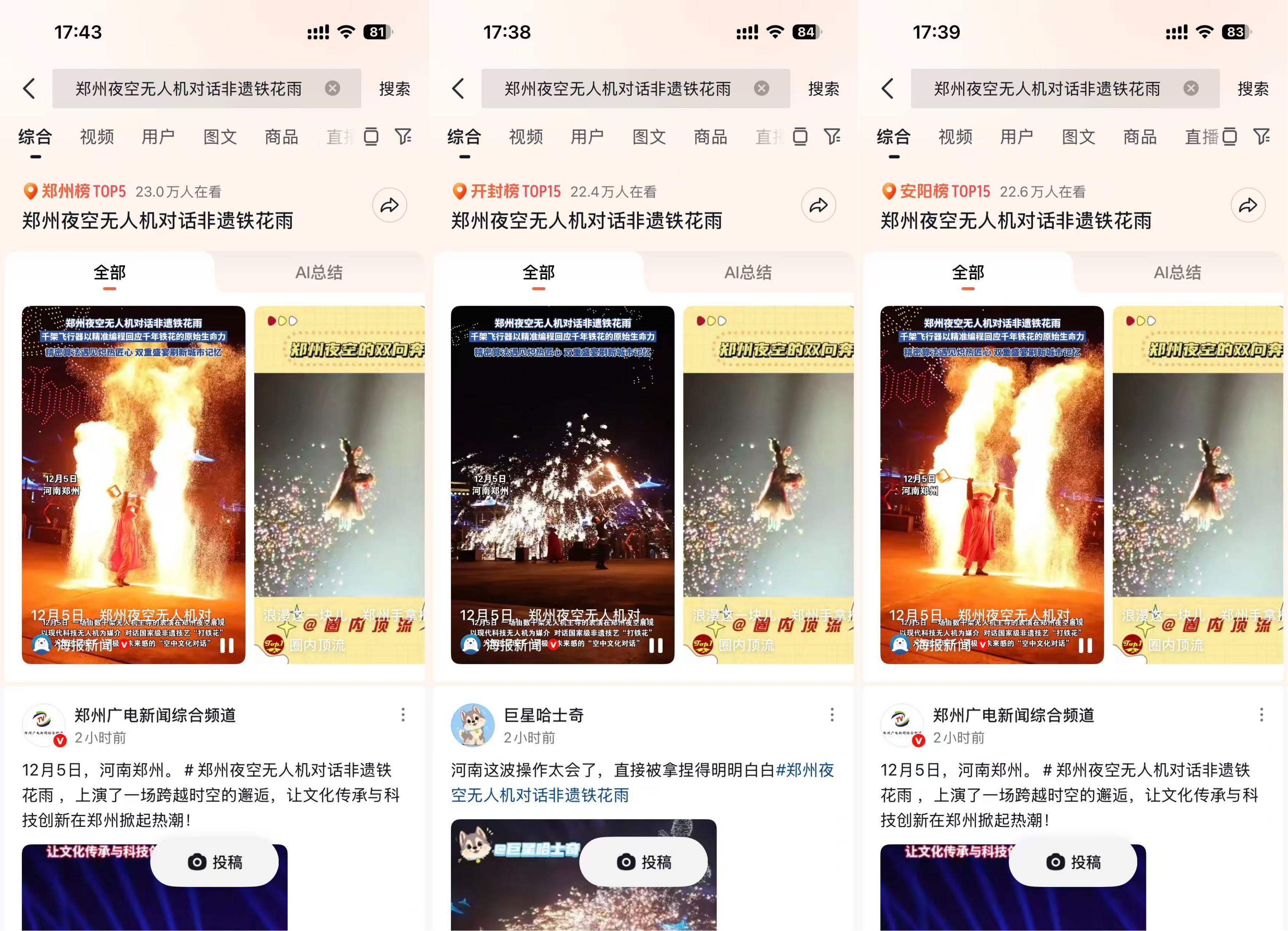 CF手游还展现出了持续突破游戏产业边界的生态构建能力。CF手游联动《舌尖上的中国》,在郑州油化厂开展的“油炸集市”活动,以玩家热梗“油炸八一”为创意起点,巧妙地将游戏内的“战术术语”与地方美食、非遗技艺(如糖画、面塑、豫菜)相结合,创造了独特的线下体验。活动期间,现代无人机与非遗打铁花的跨时代组合表演,更是成为了万众瞩目的焦点,话题#郑州夜空无人机对话非遗铁花雨#一度登上郑州、开封、洛阳等14座城市的同城热搜榜。