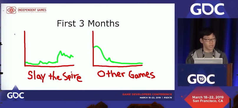 实际上作为无名小工作室的首作,《杀戮尖塔》在EA上线初期的销量也平平无奇,首发在线人数不过200人。但后来的故事我们都知道:在王老菊等中国知名Up主以及一些海外KOL的直播助力下,游戏很快得到了大批玩家关注,并且其热度在社区的口碑效应下迅速发酵。目前,三方数据估算《杀戮尖塔》已经销量逼近千万套,流水早已破亿元,而这还未计入移动端收入。