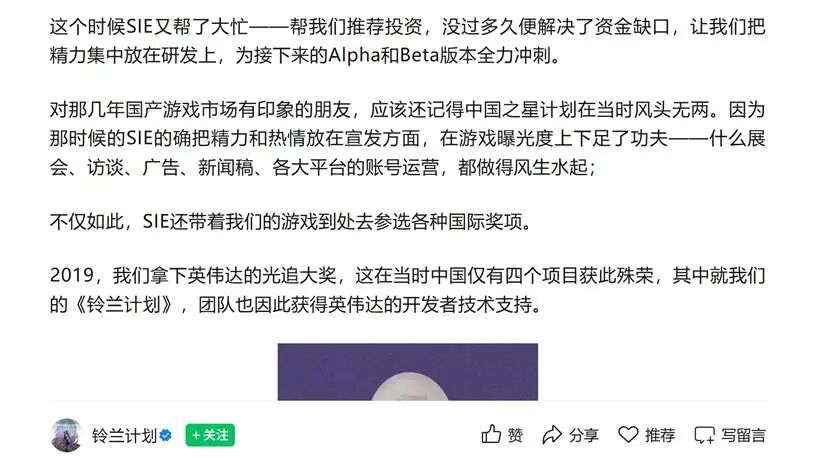 以及第二期的《失落之魂》与《铃兰计划》两款也与索尼签订了发行协议。前者因“战线”拉太长以及舆论危机销量褒姒,后者则曾发长文表示项目近乎“停滞”。