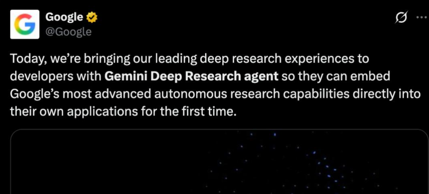 智东西12月12日消息,今日凌晨,比OpenAI早一个小时,谷歌甩出了3个Agent大招:Deep Research Agent功能更新,并首次向开发者开放;开源新网络研究Agent基准DeepSea ....