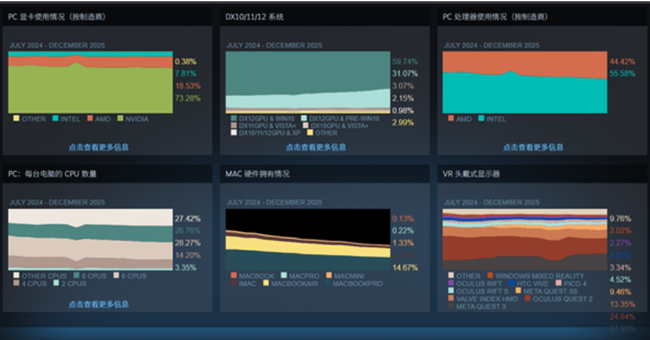 快科技1月4日消息,来到新的一年,Valve正式公布了2025年12月份的Steam硬件与软件调查数据,本月AMD Radeon RX 9070显卡终于首次出现在名单中。在显卡方面,GeForce R ....