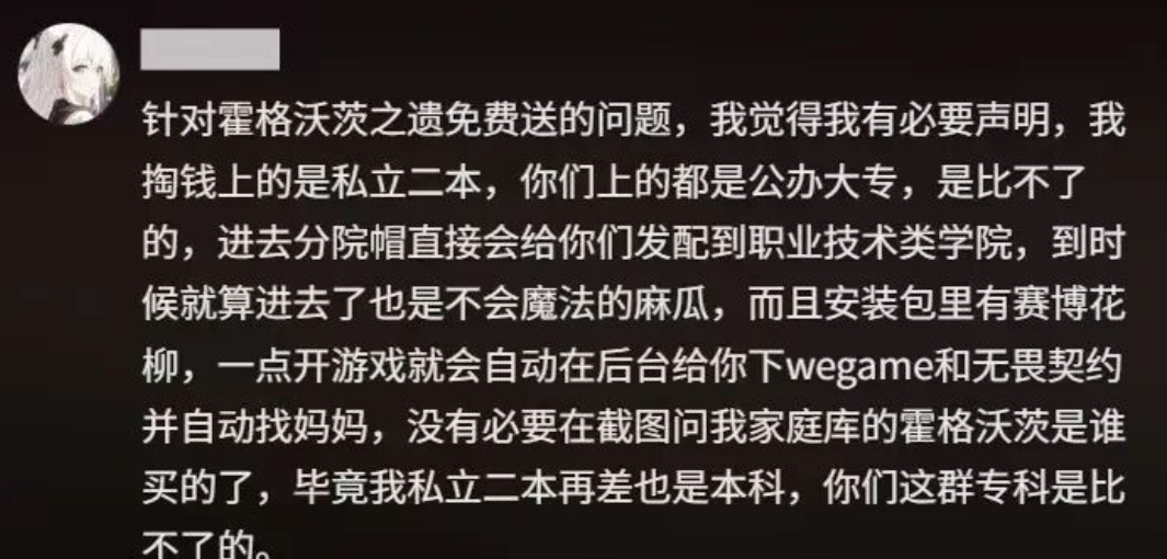 近期「哈利波特」IP单机产品《霍格沃茨之遗》的花式出圈梗属实有意思。最常见的便是老学长们破防,变身IP故事中的马尔福,开始集体「霸凌」新玩家,大骂他们都是「泥巴种」。玩家评论玩家评论一部分更委屈的玩家 ....