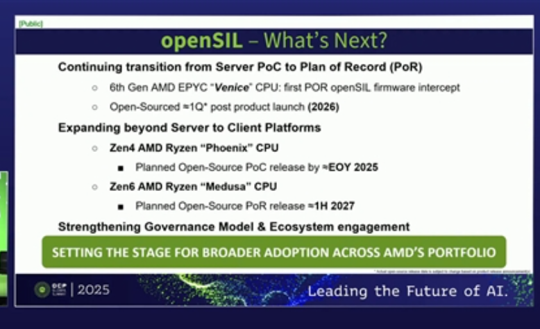 快科技10月31日消息,2025年OCP全球峰会上,AMD官方第一次明确提到了Zen 6产品代号,包括数据中心级的Venice EPYC、消费级的Medusa Ryzen。这次演讲的主题是AMD开放式 ....