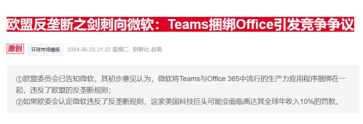 欧盟松口?针对微软的反垄断风暴或以“解绑Teams”收场